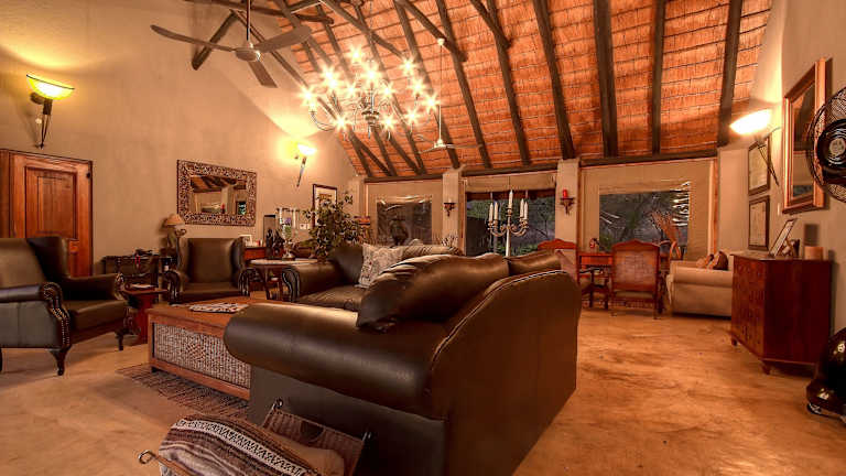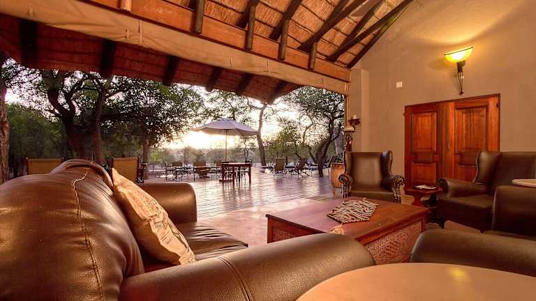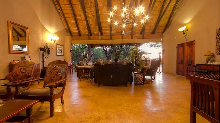 Die Lodge bietet diverse Essbereiche, darunter eine Terrasse, eine Feuerstelle und ein traditionelles Boma. Es wird ein festgelegtes Menü im Restaurant angeboten.