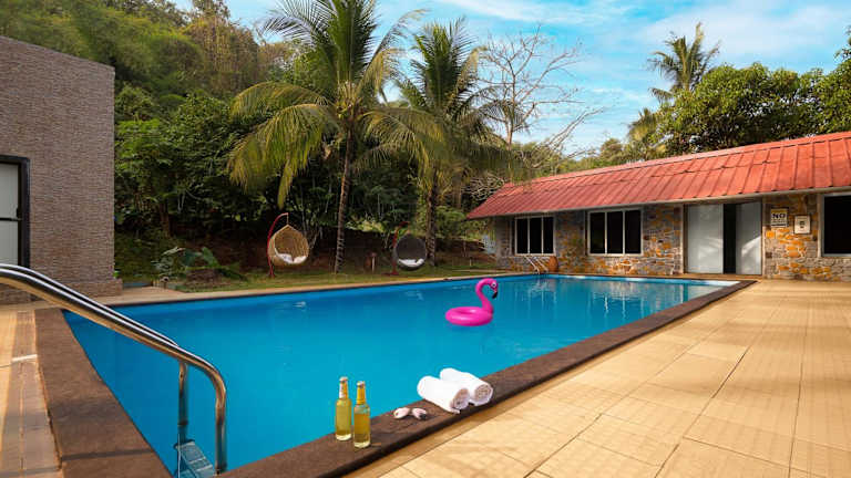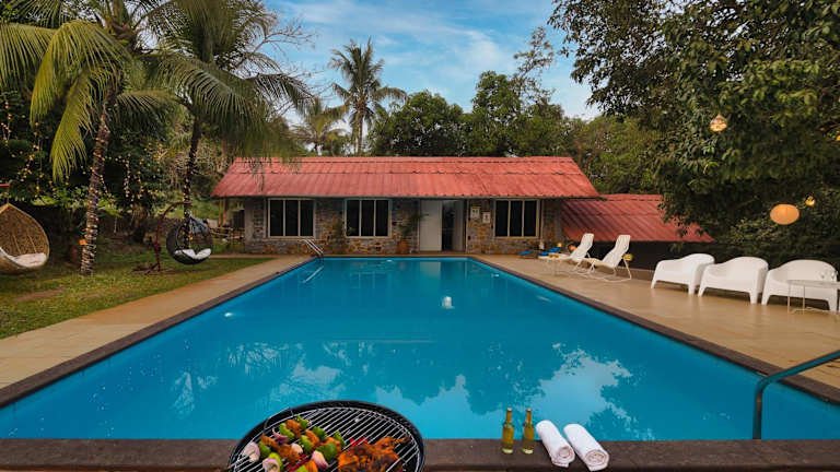Neben dem Außenpool bietet das SaffronStays Meadowbrook auch eine Sonnenterrasse, auf der Sie sich entspannen und die Sonne genießen können. Die Umgebung bietet zahlreiche Möglichkeiten für Outdoor-Aktivitäten wie Wandern und Vogelbeobachtung im Karnala Bird Sanctuary.