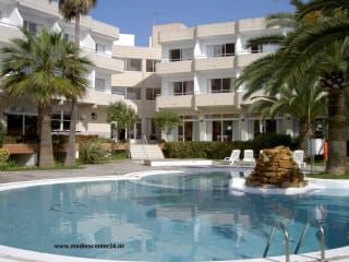 Stellen Sie sich ein Hotel mit Spa- und Wellnessbereich, privaten Räumen für Kongresse und Feiern, einem Spielzimmer, einer Lounge-Bar, einem Swimmingpool für Erwachsene und einem weiteren für Kinder, einer Poolbar mit Essens- und Getränkeservice während des Tages, einem Tennisplatz, einem großen Speisesaal mit Buffet und Show-Cooking mit Live- und Frischküche vor. Unsere Einrichtungen zeichnen sich durch einen neuen Spa- und Wellnessbereich aus: mit beheiztem Schwimmbad, Whirlpool, Sauna, türkischem Bad, Fitnessraum, Massagekabinen mit Schönheits- und Körperbehandlungen. Das Hotel liegt nur einen Steinwurf vom kristallklaren Wasser und dem weißen Sandstrand der Cala Blanca in Ciutadella de Menorca entfernt. In einer von grünen Pinienwäldern geprägten Umgebung, eingebettet in eine ruhige Urbanisation, mit touristischen Dienstleistungen für die ganze Familie.