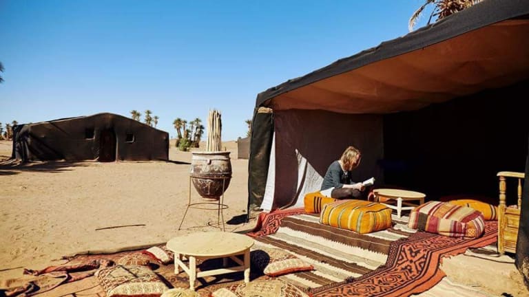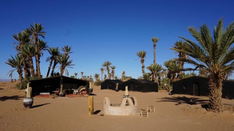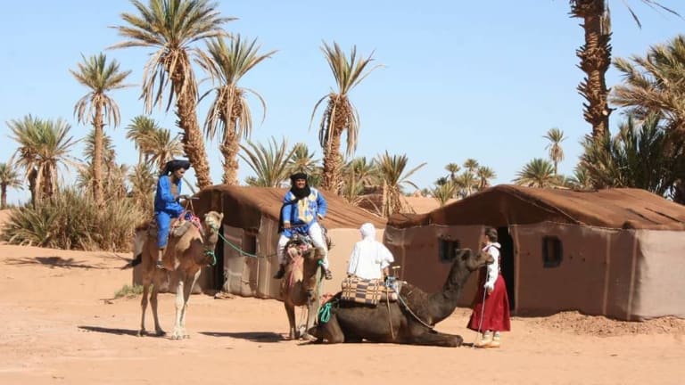 Das Sahara Luxury Camp M'hamid in M’hamid El Ghizlane ist ein einzigartiger Ort, der seinen Gästen eine authentische Wüstenerfahrung bietet. Mit kostenfreiem WLAN und Privatparkplätzen können Sie sich in den komfortablen Unterkünften entspannen. Das Frühstück wird täglich mit einer Vielzahl von Optionen serviert und im Restaurant des Campingplatzes können Sie afrikanische und marokkanische Küche genießen. Mit einem Fahrradverleih und einer Autovermietung können Sie die Umgebung erkunden und der Flughafentransfer zum nahegelegenen Flughafen Zagora ist ebenfalls möglich.