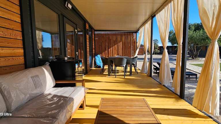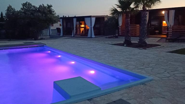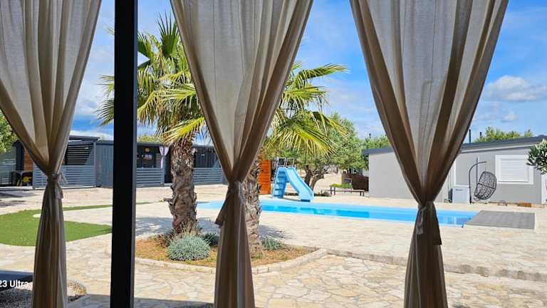 SAK Mobile Home Pirovac bietet eine komfortable Unterkunft in Form von Mobilheimen, die mit einer Veranda oder einem Patio ausgestattet sind. Die Anlage verfügt über einen Garten und eine Bar, und die Wohneinheiten sind modern und funktional gestaltet. Ein Mindestalter für den Check-in ist vorgesehen, und Haustiere sind in der Unterkunft erlaubt.
