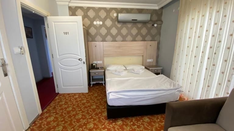 Das Sakran Hotel in Yenişakran ist die perfekte Wahl für Ihren Aufenthalt in dieser Küstenstadt. Mit einer 24-Stunden-Rezeption und komfortablen, klimatisierten Zimmern bietet das Hotel alles, was Sie für einen angenehmen Urlaub benötigen. Genießen Sie kostenfreies WLAN und entspannen Sie sich in Ihrem Zimmer, das mit einem LCD-TV, einem Safe, einer Minibar und einem eigenen Bad ausgestattet ist. Starten Sie Ihren Tag mit einem leckeren Frühstücksbuffet und erkunden Sie dann die nahegelegenen Restaurants, Cafés und Bars. Das Meer ist nur 500 m entfernt und der Flughafen Izmir ist in 100 km erreichbar.