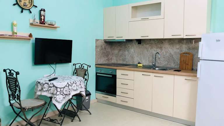 Die Apartments sind mit einer Küche ausgestattet, die einen Ofen und eine Herdplatte umfasst. Es steht ebenfalls ein Essbereich zur Verfügung, um die Mahlzeiten angenehm zu gestalten.