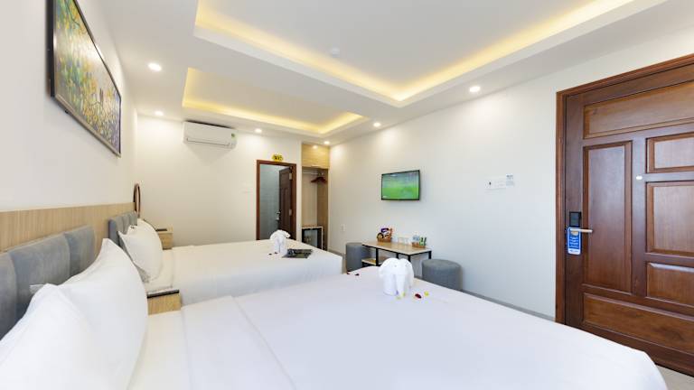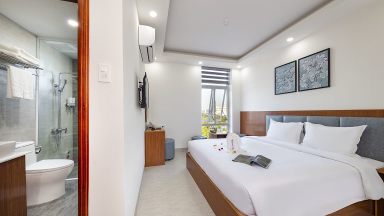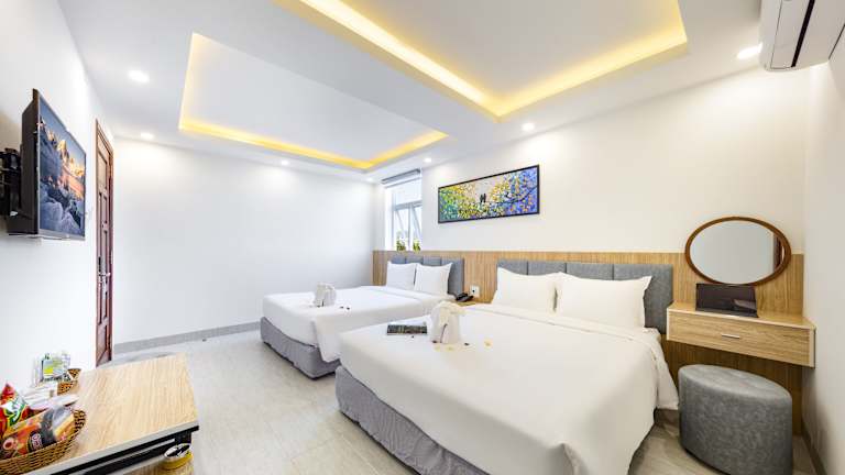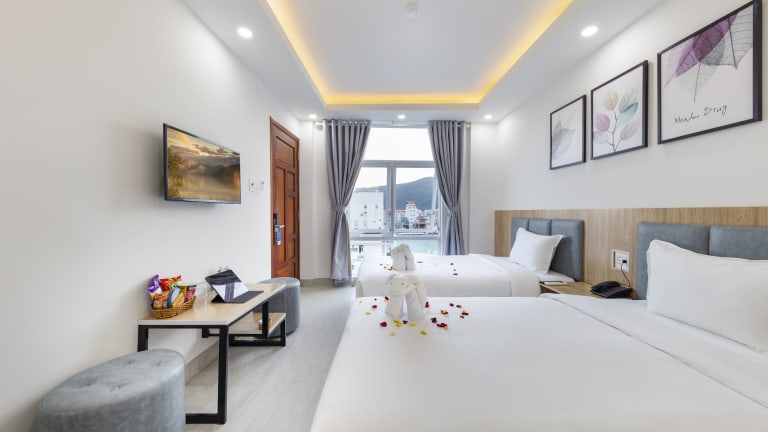 Das SALAH HOTEL in Quy Nhon bietet seinen Gästen einen angenehmen Aufenthalt in der Nähe des Strandes. Mit seinem Tourenschalter, allergikerfreundlichen Zimmern und kostenfreiem WLAN ist es eine ideale Wahl für Reisende. Genießen Sie den Zimmerservice, die 24-Stunden-Rezeption und die Gepäckaufbewahrung. Die Zimmer sind komfortabel eingerichtet und verfügen über moderne Annehmlichkeiten wie Flachbild-TV und Klimaanlage. Einige Zimmer haben sogar einen Balkon, von dem aus Sie die Aussicht genießen können. Entdecken Sie den Queen's Beach, der nur wenige Kilometer entfernt liegt, und lassen Sie sich vom freundlichen Personal des Hotels bei der Organisation von Aktivitäten unterstützen.