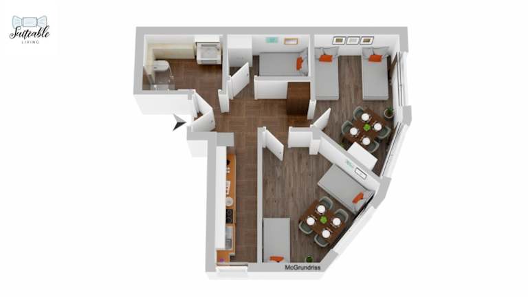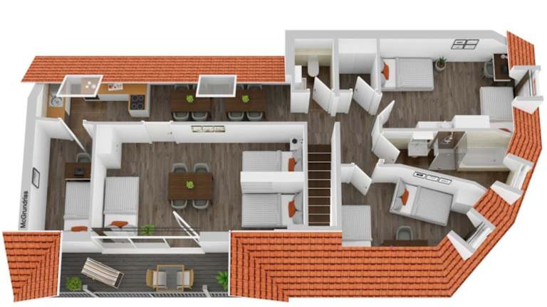 Das Apartment verfügt über 3 Schlafzimmer, die ausreichend Platz für eine größere Gruppe oder eine Familie bieten. Die voll ausgestattete Küche mit Kühlschrank und Backofen ermöglicht es den Gästen, ihre eigenen Mahlzeiten zuzubereiten. Das Apartment ist mit einem Badezimmer mit Dusche ausgestattet und Handtücher und Bettwäsche werden gestellt.