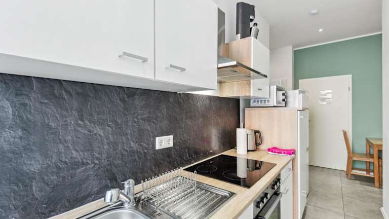 Da es sich um ein Apartment mit eigener Küche handelt, haben die Gäste die Möglichkeit, ihre eigenen Mahlzeiten zuzubereiten. In der näheren Umgebung gibt es jedoch auch Restaurants und Cafés, in denen Sie lokale Spezialitäten genießen können.