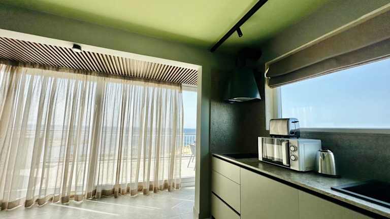 Die Ausstattung der Unterkunft umfasst eine voll ausgestattete Küche mit Essbereich, die verschiedene Kochmöglichkeiten bietet. Zur Ausstattung gehören ein Kühlschrank, eine Mikrowelle, eine Minibar sowie eine Kaffeemaschine und ein Wasserkocher.