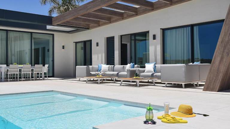 Die Villa bietet Platz in 6 Schlafzimmern und ist klimatisiert. Zur Ausstattung gehören ein Wohnzimmer, eine voll ausgestattete Küche mit Kühlschrank und Kaffeemaschine sowie 6 Badezimmer, die jeweils über eine Dusche und einen Haartrockner verfügen. Handtücher und Bettwäsche werden bereitgestellt. In der Unterkunft sind Grillmöglichkeiten vorhanden.