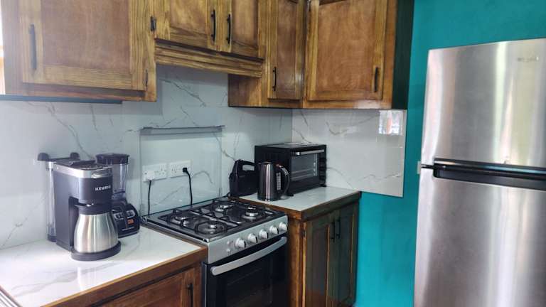 Die Ferienwohnung verfügt über ein Schlafzimmer, ein Wohnzimmer und eine voll ausgestattete Küche, die mit einem Kühlschrank und einem Wasserkocher ausgestattet ist. Zudem stehen ein Badezimmer mit Dusche und Haartrockner sowie Handtücher und Bettwäsche zur Verfügung.