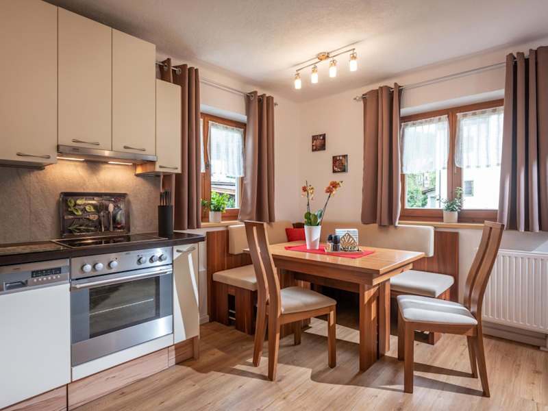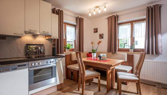 Die Ferienwohnung ist mit einer voll ausgestatteten Küche ausgestattet, die unter anderem einen Kühlschrank und eine Kaffeemaschine bietet. Es sind keine weiteren Informationen zu Verpflegungsmöglichkeiten vorhanden.