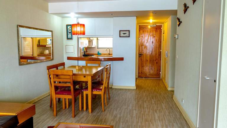 Die Apartments bieten praktische Möbel, einen Fernseher sowie einen eigenen Balkon. Jedes Apartment ist mit einer voll ausgestatteten Küche für Selbstversorger ausgestattet. Ein zusätzliches Bett kann auf Anfrage auf einem Schlafsofa bereitgestellt werden.