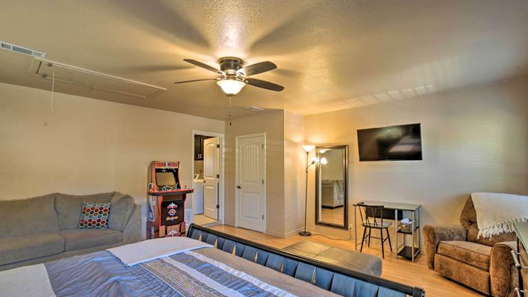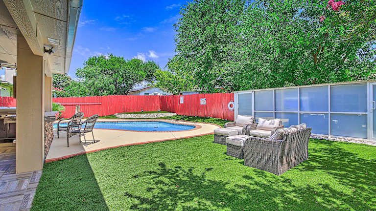 Das San Antonio Oasis with Hot Tub, Pool and Outdoor Bar! befindet sich in San Antonio, einer lebendigen Stadt in Texas. Die Unterkunft liegt nur 10 km von der SeaWorld San Antonio entfernt, einem beliebten Freizeitpark mit Shows und Attraktionen für die ganze Familie. Die Geschäfte im Einkaufszentrum La Cantera sind ebenfalls in der Nähe und bieten eine Vielzahl von Einkaufs- und Unterhaltungsmöglichkeiten. Der Freizeitpark Six Flags Fiesta Texas ist nur 19 km entfernt und bietet Nervenkitzel und Spaß für Abenteuerlustige. Der internationale Flughafen San Antonio ist bequem zu erreichen und liegt nur 19 km entfernt.