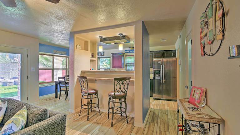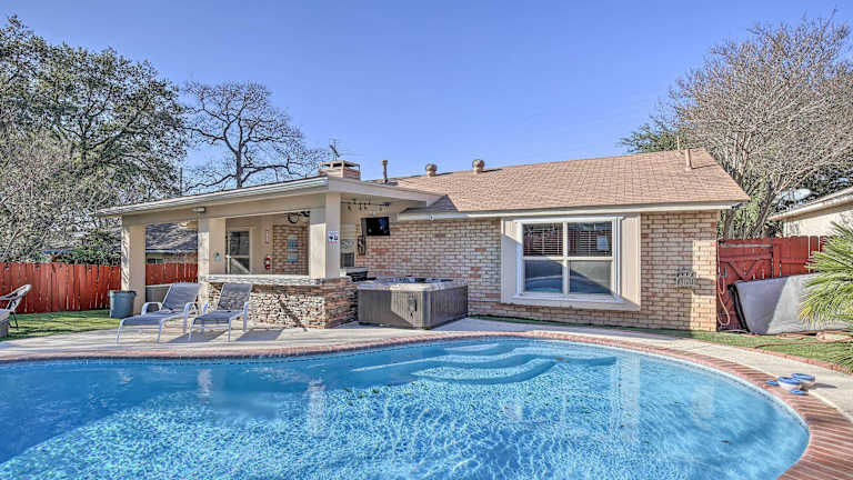 Im San Antonio Oasis with Hot Tub, Pool and Outdoor Bar! können Sie sich an der Bar im Freien entspannen und erfrischende Getränke genießen. Wenn Sie lieber Ihre eigenen Mahlzeiten zubereiten möchten, steht Ihnen eine voll ausgestattete Küche zur Verfügung. Sie können auch die nahegelegenen Restaurants erkunden und die vielfältige Küche von San Antonio entdecken.