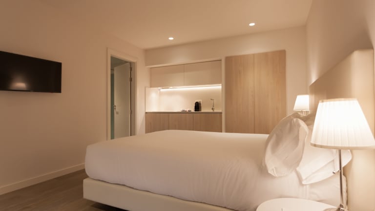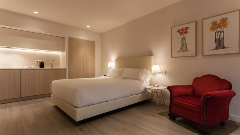 Die Zimmer in den San Lorenzo Suites sind modern und komfortabel eingerichtet. Jedes Zimmer verfügt über einen Flachbild-Sat-TV, eine Mikrowelle, eine Kaffeemaschine, einen Schreibtisch und kostenfreies WLAN. Zur weiteren Ausstattung gehören ein Kleiderschrank, ein Kühlschrank und ein Wasserkocher. Das eigene Bad ist mit einer Dusche und kostenfreien Pflegeprodukten ausgestattet.