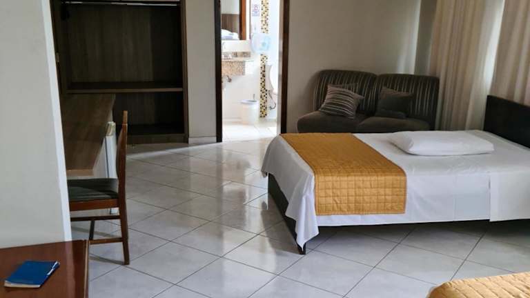 Das San Marino Palace Hotel in Guarapuava bietet seinen Gästen eine komfortable Unterkunft mit einer Vielzahl von Annehmlichkeiten. Das Hotel liegt in der Nähe des Busbahnhofs und des Einkaufszentrums Cidade dos Lagos. Die Gäste können sich auf ein reichhaltiges Frühstücksbuffet, kostenfreies WLAN, kostenlose Parkplätze und eine rund um die Uhr besetzte Rezeption freuen. Darüber hinaus wird täglich eine Kaffeepause angeboten. Die Zimmer sind gut ausgestattet und verfügen über einen LCD-TV, ein Telefon, ein eigenes Bad mit Dusche sowie Klimaanlage oder Ventilator. Einige Zimmer bieten zusätzlich einen LCD-TV und eine Whirlpool-Badewanne. In der Umgebung des Hotels gibt es verschiedene Freizeitmöglichkeiten wie den Park Parque do Lago und die Universitäten Unicentro und UTFPR. Gäste können sich auch auf eine kostenlose Kaffeepause freuen, die von Montag bis Samstag von 18:30 bis 19:30 Uhr angeboten wird.
