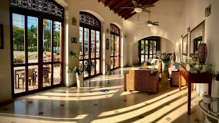 Das San Martin Cartagena Hotel liegt im beliebten Touristenviertel von Bocagrande, nur wenige Minuten von der Altstadt entfernt. Der Strand ist nur 100 Meter entfernt und in der Nähe finden Sie Geschäfte, Restaurants, Einkaufszentren, Supermärkte, Krankenhäuser, Apotheken und Nachtclubs. Die Fahrt nach Barranquilla dauert etwa 30 Minuten und zum Flughafen benötigen Sie nur etwa 8 Minuten.