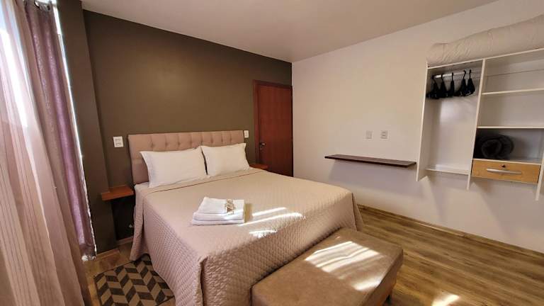 Das San Michael Hospedaria in Treze Tílias bietet seinen Gästen einen komfortablen Aufenthalt mit einem Apartment, das mit allen Annehmlichkeiten ausgestattet ist. Genießen Sie den Zugang zu einem Balkon, kostenfreiem WLAN und kostenfreien Privatparkplätzen. Das klimatisierte Apartment verfügt über ein Schlafzimmer, ein Wohnzimmer, eine voll ausgestattete Küche und ein Badezimmer. Handtücher und Bettwäsche werden gestellt. Nutzen Sie den Grill, der Ihnen zur Verfügung steht, und erkunden Sie die Umgebung bei einer Wanderung. Der Flughafen Joacaba liegt etwa 40 km entfernt.