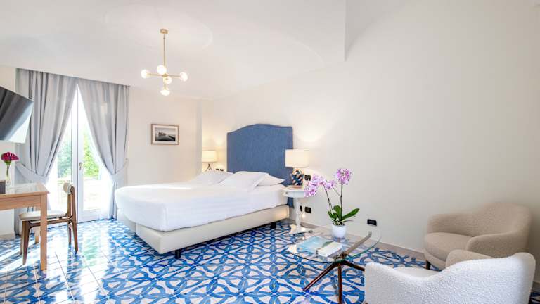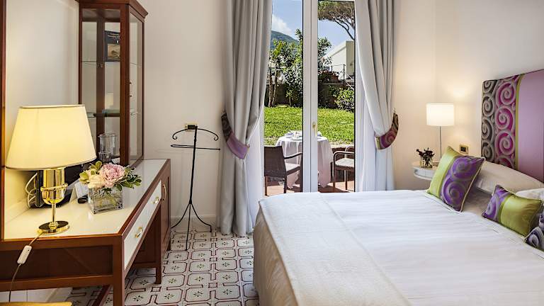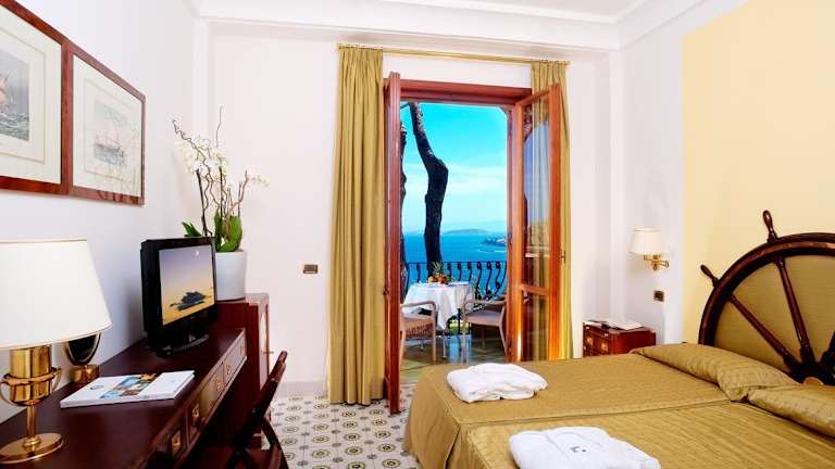 Die Zimmer und Suiten im San Montano Resort & Spa sind geschmackvoll eingerichtet und bieten modernen Komfort. Jedes Zimmer verfügt über einen eigenen Balkon oder eine Terrasse, von der aus Sie den atemberaubenden Meerblick genießen können. Zur Ausstattung gehören ein TV, ein eigenes Bad mit Hausschuhen und kostenfreien Pflegeprodukten.