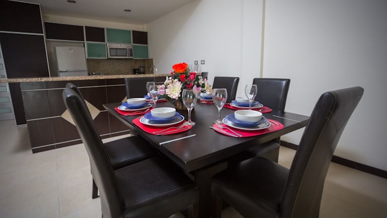 Die Zimmer im Hotel Condoplaza San Pedro sind geräumig und komfortabel eingerichtet. Sie verfügen über ein separates Wohnzimmer, eine voll ausgestattete Küche und ein eigenes Badezimmer. Ein Balkon lädt zum Entspannen ein und bietet einen schönen Ausblick auf die Umgebung. Zur Ausstattung gehören auch eine Klimaanlage, ein Fernseher mit Kabelempfang, kostenfreies WLAN und eine Tee-/Kaffeemaschine. Familienzimmer stehen ebenfalls zur Verfügung.