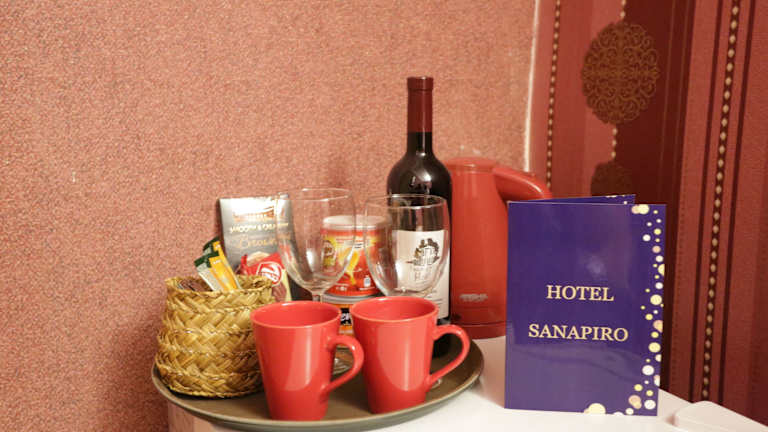 Das Sanapiro Hotel im Zentrum von Kutaisi bietet haustierfreundliche Unterkünfte und eine Vielzahl von Annehmlichkeiten für einen angenehmen Aufenthalt. Genießen Sie kostenfreies WLAN, eine Sonnenterrasse und kostenlose Privatparkplätze. Der Flughafentransfer kann auf Anfrage arrangiert werden, und die 24-Stunden-Rezeption steht Ihnen zur Verfügung, um Ihnen bei allen Fragen und Wünschen behilflich zu sein.