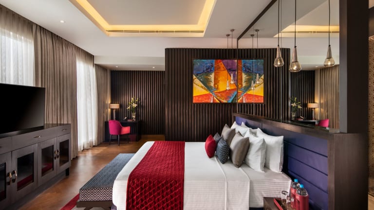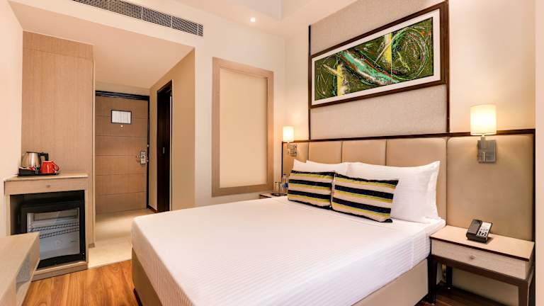 Die Zimmer im Sandal Suites by Lemon Tree Hotels sind komfortabel und stilvoll eingerichtet. Jedes Zimmer verfügt über einen Flachbild-TV und einige Zimmer bieten einen separaten Sitzbereich zum Entspannen. Ein Wasserkocher ist ebenfalls vorhanden, damit Sie sich eine Tasse Tee oder Kaffee zubereiten können. Für Ihren Komfort sind Hausschuhe, kostenfreie Pflegeprodukte und ein Haartrockner vorhanden. Das kostenfreie WLAN steht Ihnen in allen Bereichen des Hotels zur Verfügung.