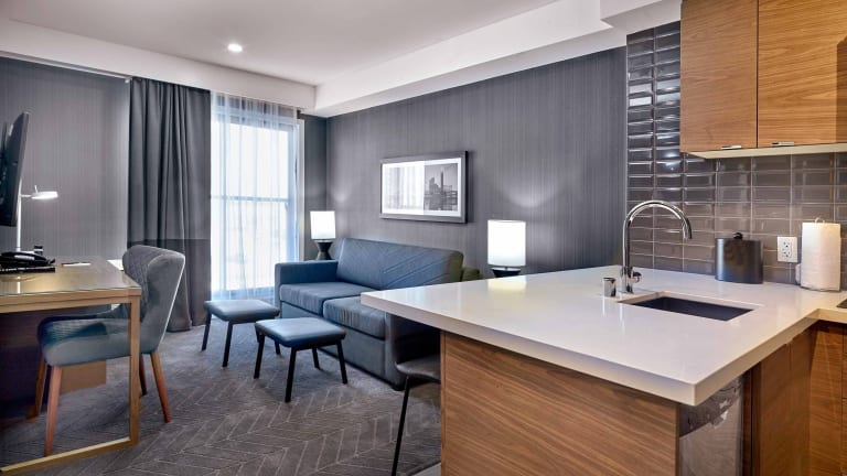 Die klimatisierten Zimmer sind mit einem Schreibtisch, einer Kaffeemaschine, einem Kühlschrank, einer Mikrowelle, einem Safe, einem Flachbild-TV und einem eigenen Badezimmer mit einer Dusche ausgestattet. In ausgewählten Zimmern befinden sich zusätzlich eine Küche mit Geschirrspüler, Herdplatte und Toaster. Alle Zimmer sind mit Bettwäsche und Handtüchern versehen.