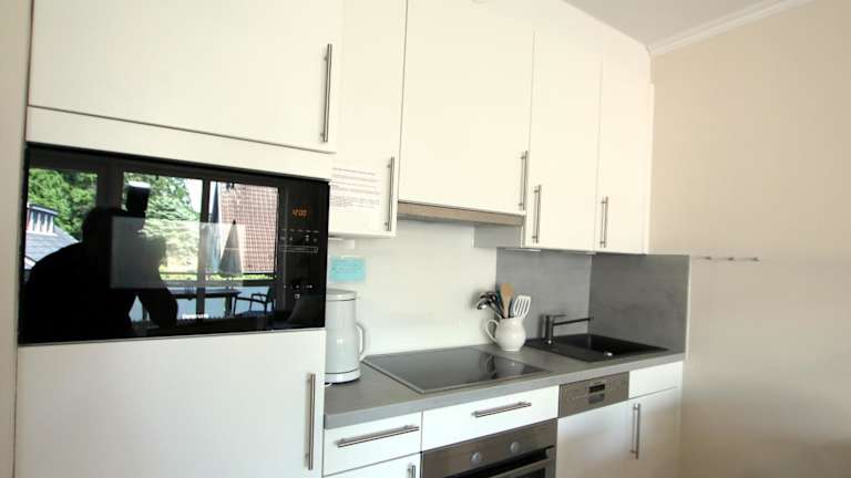 Die Ferienwohnung verfügt über zwei Schlafzimmer, einen Fernseher und eine voll ausgestattete Küche. Zur Ausstattung der Küche gehören ein Kühlschrank, ein Geschirrspüler, eine Waschmaschine, ein Ofen und eine Mikrowelle.