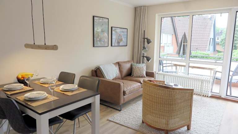 Die Unterkunft Sandwall 68, Whg 12, Haus Seeadler bietet eine Ferienwohnung mit Übernachtungsmöglichkeiten, die mit einem Balkon ausgestattet ist. Die Ferienwohnung bietet Zugang zu kostenlosem WLAN.