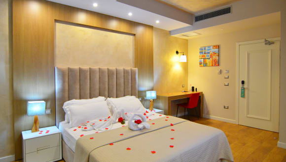 Das Sandy Beach Resort liegt in der Region Tirana und besticht durch seine erstklassige Lage direkt am Strand von Golem. Von hier aus können Sie das klare Wasser und den feinen Sandstrand in nur wenigen Schritten erreichen. Die Stadt Durrës ist nur 17 km entfernt und die Hauptstadt Tirana erreichen Sie nach 40 km. Der Flughafen Tirana ist ebenfalls gut erreichbar und liegt nur 44 km entfernt.