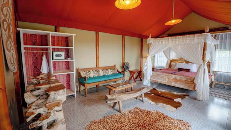 Das Sang Giri - Mountain Glamping Camp in Jatiluwih bietet Ihnen einen ruhigen Rückzugsort inmitten der malerischen Reisterrassen. Die Glamping-Zelte mit Panoramablick auf die Berge und den Dschungel sorgen für ein einzigartiges Naturerlebnis. Entspannen Sie auf Ihrer eigenen Terrasse und nutzen Sie die vielfältigen Freizeitangebote wie Yoga, Mountainbiken und Wandern. Das Restaurant verwöhnt Sie mit authentischen balinesischen Gerichten und westlichen Klassikern.