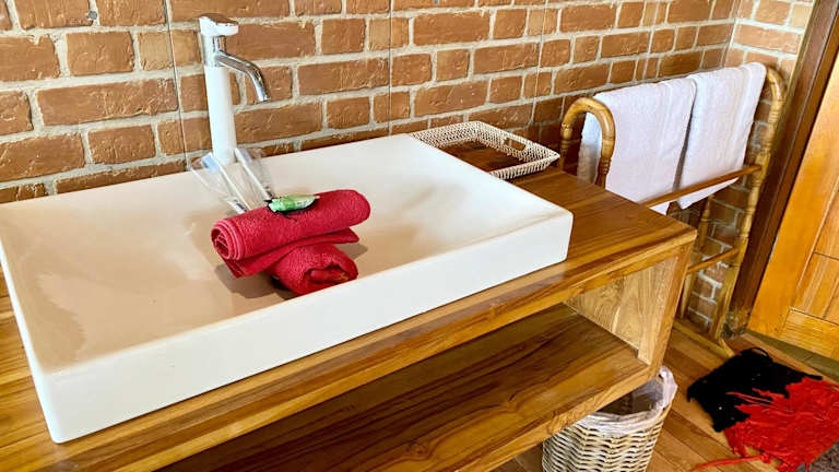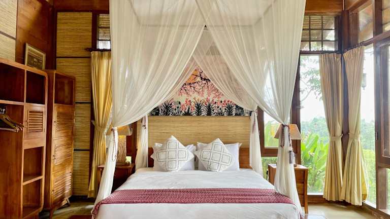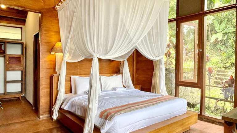 Die Zimmer im Sang Tirta Resort sind komfortabel und bieten einen schönen Blick auf den Garten. Jedes Zimmer verfügt über ein eigenes Badezimmer mit Dusche und kostenfreien Pflegeprodukten.