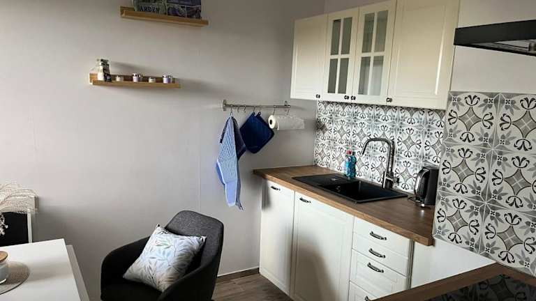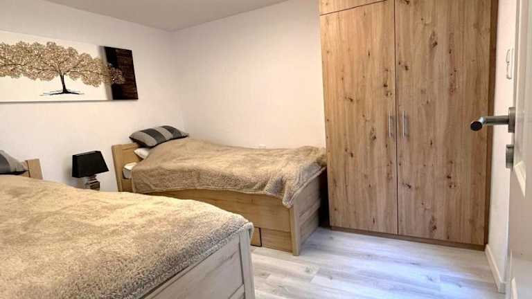 Die sanierte ruhige Wohnung in der Natur mit Küche bietet Übernachtungsmöglichkeiten in einer ruhigen Lage. Zur Ausstattung gehören ein Balkon, ein Garten sowie ein kostenloser Privatparkplatz. Diese Ferienwohnung ist von einem privaten Gastgeber geführt und bietet eine Nichtraucherunterkunft, in der keine Junggesellen-/Junggesellinnenabschiede oder ähnliche Feiern erlaubt sind.