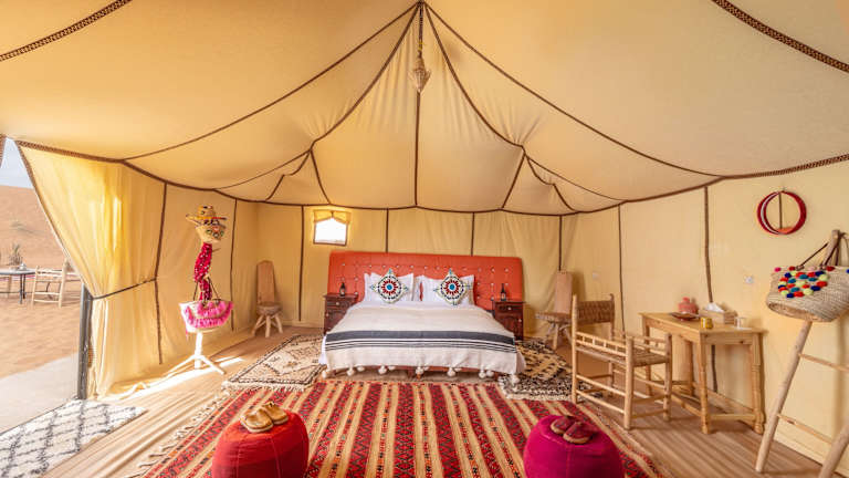 Die Unterkunft Sanmao Desert Luxury Camp befindet sich in Merzouga, unweit der hohen Dünen in der Region. Der nächste Flughafen, der Flughafen Moulay Ali Cherif, ist 128 km entfernt.