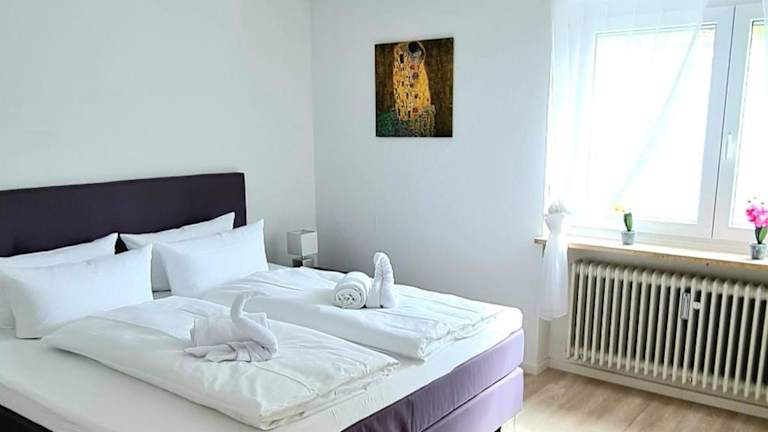 Die Ferienwohnung umfasst ein Schlafzimmer, ein Wohnzimmer, einen Flachbild-TV sowie eine gut ausgestattete Küche mit Kühlschrank und Geschirrspüler. Das Badezimmer ist mit einer Dusche ausgestattet. Handtücher und Bettwäsche werden bereitgestellt.