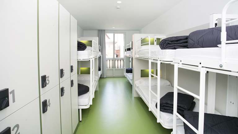 Das Sant Jordi Hostels Rock Palace bietet eine Vielzahl von Zimmern und Schlafsälen, die alle mit Klimaanlage und Schließfächern ausgestattet sind. Die Gemeinschaftsbadezimmer befinden sich entweder im Zimmer oder auf dem Flur. Handtücher und Bettwäsche werden gestellt, so dass Sie sich um diese Dinge keine Sorgen machen müssen. Für Ihre Bequemlichkeit gibt es auch eine Gemeinschaftsküche mit Mikrowelle und Kühlschrank, in der Sie Ihre eigenen Mahlzeiten zubereiten können. Im Gemeinschaftsraum können Sie sich entspannen und einen Flachbild-TV nutzen. Ein Wäscheservice steht gegen Gebühr zur Verfügung, so dass Sie Ihre Kleidung bequem reinigen können.