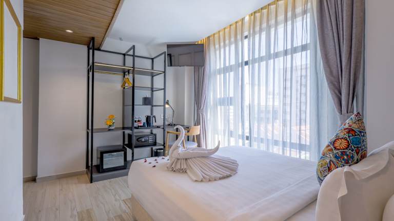 Die klimatisierten Zimmer verfügen über einen Schreibtisch, einen Wasserkocher, eine Minibar, einen Safe, einen Flachbild-TV sowie ein eigenes Badezimmer mit einem Bidet. Jedes Zimmer ist zudem mit Bettwäsche und Handtüchern ausgestattet.