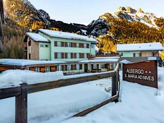 Das Hotel Santa Maria ad Nives in Canazei bietet seinen Gästen eine ideale Lage in unmittelbarer Nähe des Skigebiets Ciampac und nur eine kurze Fahrt vom Zentrum von Canazei entfernt. Mit seinen alpinen Zimmern, dem hauseigenen Restaurant und der Sonnenterrasse bietet das Hotel den perfekten Ausgangspunkt für einen gelungenen Urlaub in den Dolomiten.