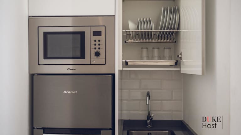Die Küchen der Apartments sind mit Kühlschrank, Mikrowelle, Kaffeemaschine und Wasserkocher ausgestattet, was eine Selbstversorgung ermöglicht.
