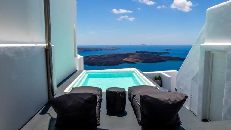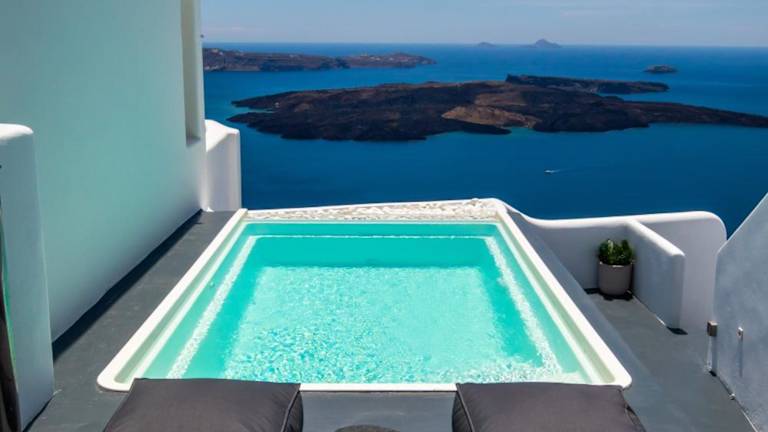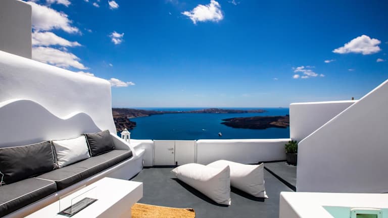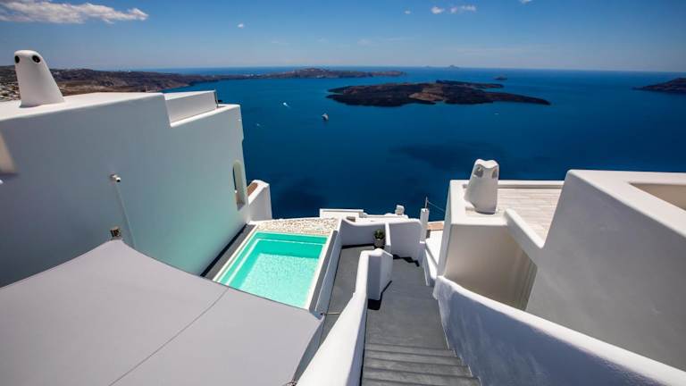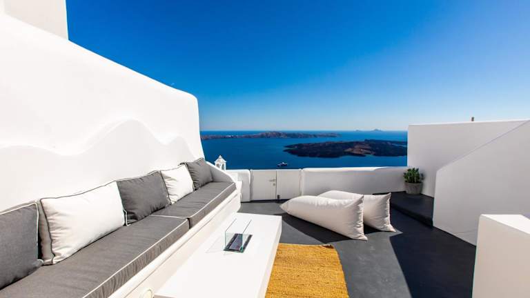 Die Villa befindet sich in Imerovigli, einer Region der Kykladen, etwa 6 km von Oía entfernt und 1,4 km von Fira. Die Unterkunft bietet eine Meer- und Vulkanansicht. Kamari liegt in einer Entfernung von 8 km und Ios Chora ist 35 km entfernt. Der Flughafen Santorin ist 5 km entfernt.