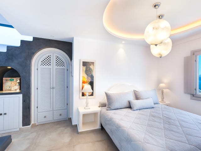 Die Suiten sind mit einer Klimaanlage ausgestattet und bieten einen Balkon mit Blick auf die Caldera und den Vulkan. Zur Ausstattung der Zimmer gehören ein Kingsize-Bett mit Designer-Bettwäsche, eine Sitzecke, ein eigenes Bad mit kostenfreien Pflegeprodukten sowie ein Whirlpool im Freien. Weitere Annehmlichkeiten sind kostenlose Kosmetikartikel, Hausschuhe, TV, WiFi, Safe und eine Minibar.