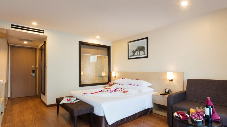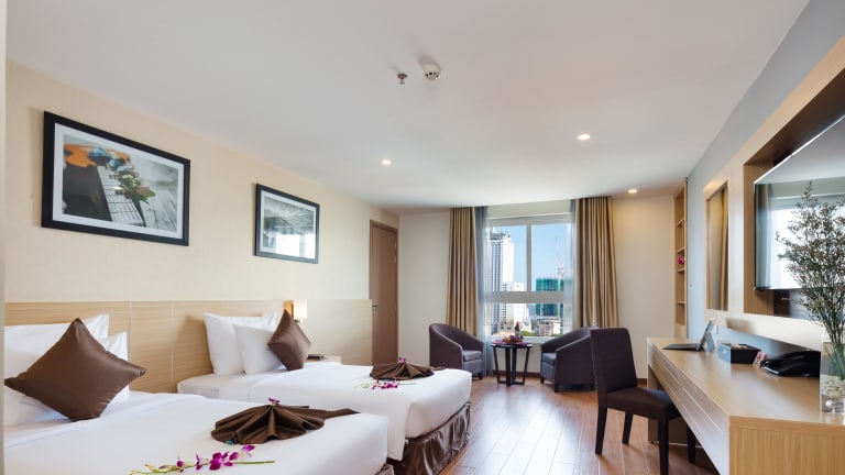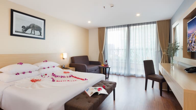 Die klimatisierten Zimmer im Sao Viet Nha Trang Hotel sind komfortabel und verfügen über Annehmlichkeiten wie einen Flachbild-Sat-TV, einen Wasserkocher und ein eigenes Bad. Einige Zimmer bieten einen atemberaubenden Meerblick.