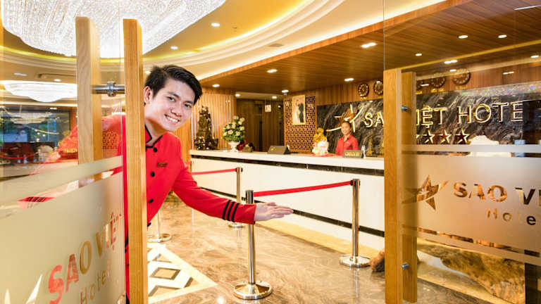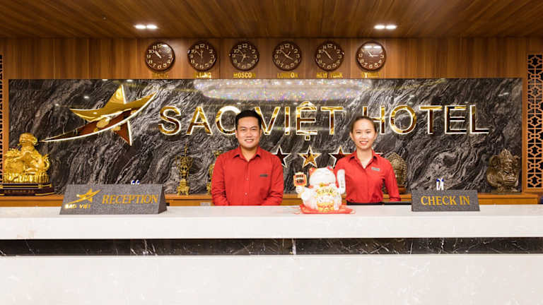 Das Sao Viet Nha Trang Hotel in Nha Trang bietet eine ideale Lage, nur wenige Gehminuten von Einkaufszentren, Museen und dem Strand entfernt. Das Hotel verfügt über Annehmlichkeiten wie einen Außenpool, ein Restaurant und einen Fitnessraum. Die klimatisierten Zimmer sind komfortabel und einige bieten einen herrlichen Meerblick. Das freundliche Personal spricht Englisch und Russisch und steht Ihnen jederzeit zur Verfügung. Genießen Sie jeden Morgen ein leckeres Frühstücksbuffet.