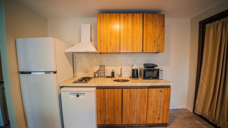 Die Zimmer sind mit einem Essbereich und einer Küchenzeile ausgestattet, die eine Mikrowelle, einen Kühlschrank sowie ein Kochfeld und einen Wasserkocher umfasst. Im eigenen Bad befinden sich Hausschuhe und kostenfreie Pflegeprodukte. Für die Gäste werden Bettwäsche und Handtücher bereitgestellt. Es gibt schallisolierte Zimmer und Familienzimmer. WLAN ist in allen Bereichen des Hotels verfügbar.