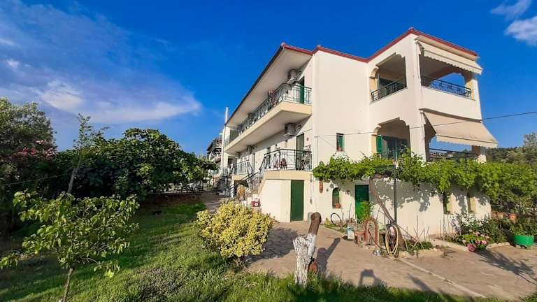 Die Sapfo Beach Studios liegen direkt gegenüber dem Sandstrand von Nikiti und bieten somit eine fantastische Lage für SonnenanbeterInnen und Badebegeisterte. Das Dorf Nikiti mit seinen charmanten Geschäften und gemütlichen Tavernen erreichen Sie bequem nach nur 1 km. Die Studios befinden sich auch in der Nähe einer Bushaltestelle, die es Ihnen ermöglicht, die Umgebung zu erkunden. Der internationale Flughafen Makedonien ist ca. 100 km entfernt.