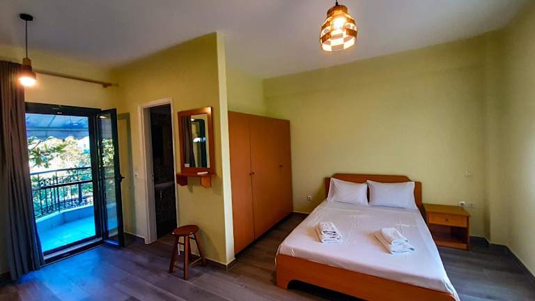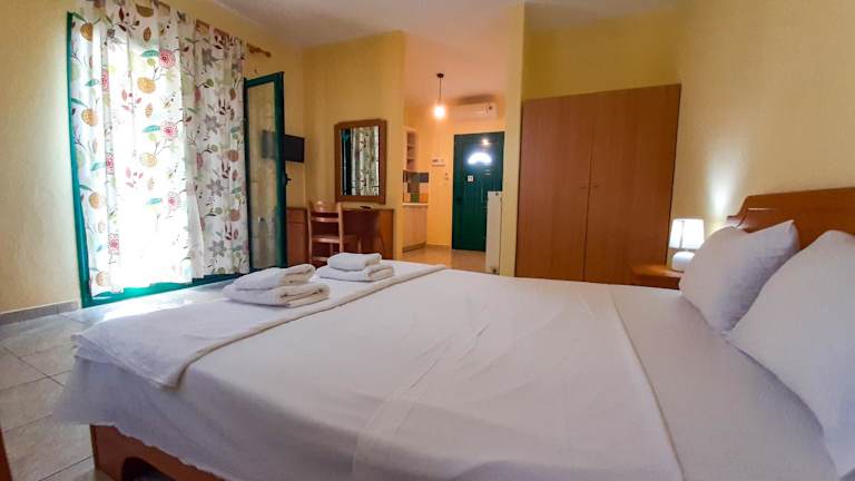Die Studios im Sapfo Beach sind hell und komfortabel eingerichtet. Sie verfügen über klimatisierte Räume mit Holzmöbeln und Fliesenböden. Jedes Studio ist mit einem TV, einer Küchenzeile mit Kochplatten und einem Kühlschrank sowie einem eigenen Badezimmer mit Dusche ausgestattet. Genießen Sie den Komfort eines eigenen Balkons mit Blick auf den Garten und entspannen Sie sich in Ihrem eigenen kleinen Rückzugsort.
