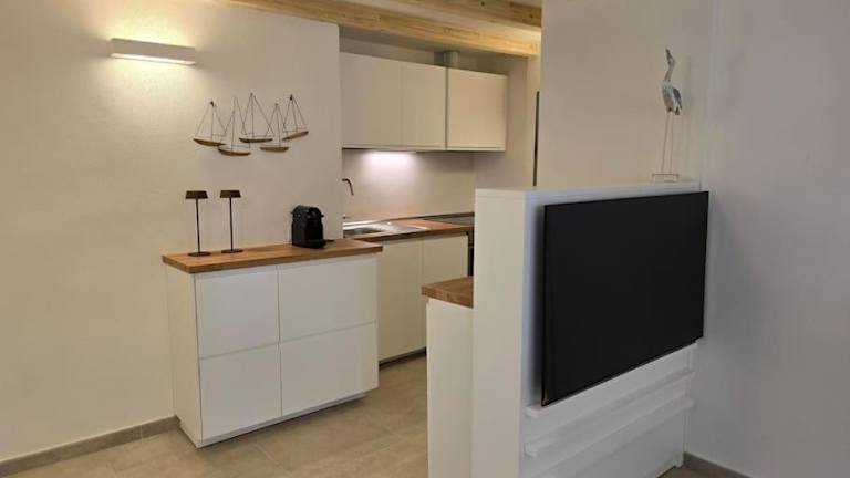 Die Unterkunft verfügt über eine Küchenzeile, die mit einem Kühlschrank, Geschirrspüler und Ofen komplett ausgestattet ist, sodass Gästen die Zubereitung von Mahlzeiten ermöglicht wird.