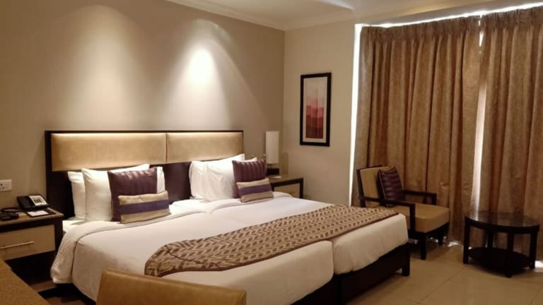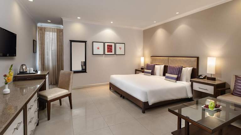 Die Zimmer im Sarovar Portico Surajkund sind klimatisiert und bieten modernen Komfort für einen angenehmen Aufenthalt. Jedes Zimmer verfügt über kostenfreies WLAN, einen Flachbild-Kabel-TV und ein eigenes Bad. Einige Zimmer bieten auch einen separaten Sitzbereich, in dem Sie sich entspannen können. Das Hotel bietet auch einen Zimmerservice, der Ihnen alle Annehmlichkeiten direkt in Ihr Zimmer bringt.