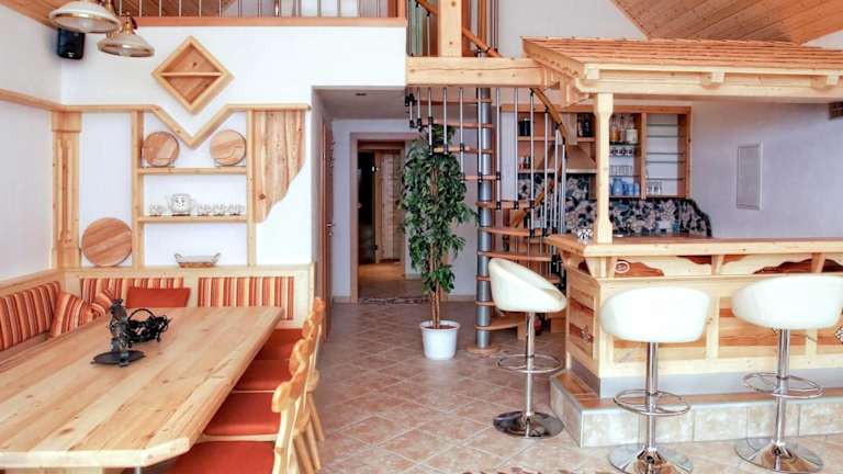 Im Saunahaus Gröbming können Sie Ihre eigenen Mahlzeiten in der voll ausgestatteten Küche zubereiten und im Garten grillen. Alternativ können Sie in der Gemeinschaftslounge entspannen oder die nahe gelegenen Restaurants und Bars besuchen, um lokale Spezialitäten zu probieren.
