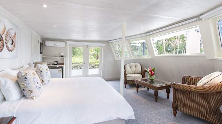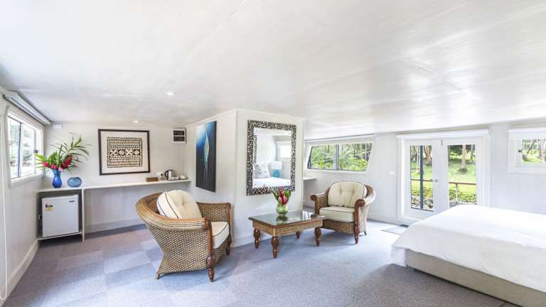 Das Savasi Island Resort liegt auf einer privaten Insel vor der Küste von Vanua Levu, nur 10 Minuten vom Flughafen Savusavu entfernt. Die Insel bietet eine unberührte Umgebung mit Korallenriffen und privaten Stränden, die zum Erkunden und Entspannen einladen. Die atemberaubende Naturkulisse mit riesigen Banyan-Bäumen und fantastischen Wanderwegen durch Korallenschluchten bietet zahlreiche Möglichkeiten, die Schönheit der Insel zu entdecken.
