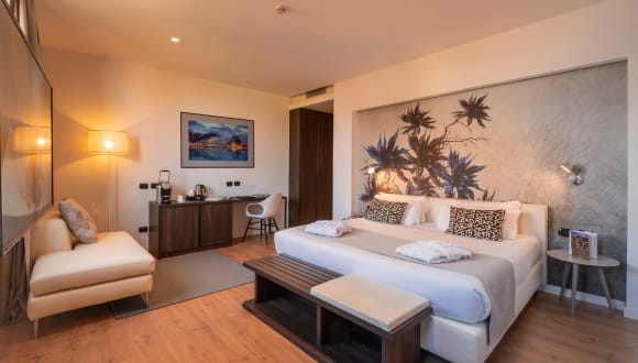 Die Zimmer, die komplett in modernem und elegantem Stil renoviert wurden, bieten einen hohen Standard an Komfort und Bequemlichkeit. Einige von ihnen bieten einen eindrucksvollen Ausblick auf die Stadtmitte und die Hügel Bolognas. Dank spezieller Einlass- und Ausstoßsysteme wird in all unseren Zimmern alle 36 Minuten der ständige Luftwechsel garantiert; eine wichtige Maßnahme, um bezüglich der Virusübertragung ein hohes Maß an Sicherheit zu gewährleisten. Die Ausstattung der Zimmer umfasst kostenloses 1000 Mbps WLAN, 49 Zoll Smart LED TV, mit einer Auswahl an italienischen und ausländischen Sendern, Sky Sport und Cinema, eine Minibar, einen elektronischen Safe, Temperaturkontrolle und Chromecast Service, ein Mirroring-System, das es ermöglicht, die multimedialen Inhalte von Ihrem Smartphone (Netflix Filme, DAZN Sportevents, Lieder von Spotify,…) direkt auf dem Fernseher im Zimmer anschauen zu können, in völliger Sicherheit und mit Einhaltung der Privatsphäre des Gastes. Auch die Badezimmer sind vollständig in modernem Stil renoviert und mit einer großen und praktischen Dusche, einem Körperpflegeset, einem beleuchteten Spiegel und einem leistungsstarken Fön ausgestattet.